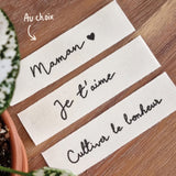 3 messages doux et positifs : parfaits pour offrir, ils sont écrits à la main par mes soins et reproduis sur tissu coton pour coller à l'image de Joli Pot !