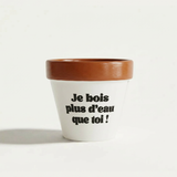 Ce Joli Pot “Je bois plus d’eau que toi” est né d’une belle rencontre entre deux univers créatifs : Joli Pot, l’atelier toulousain où chaque pot est peint à la main avec douceur et patience, et Muisti, la marque lilloise de Xavier, avec qui on partage le même goût pour les objets qui font sourire et qui ont du sens.
