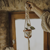 une suspension macramé en jute pour exposer joliment vos plantes.